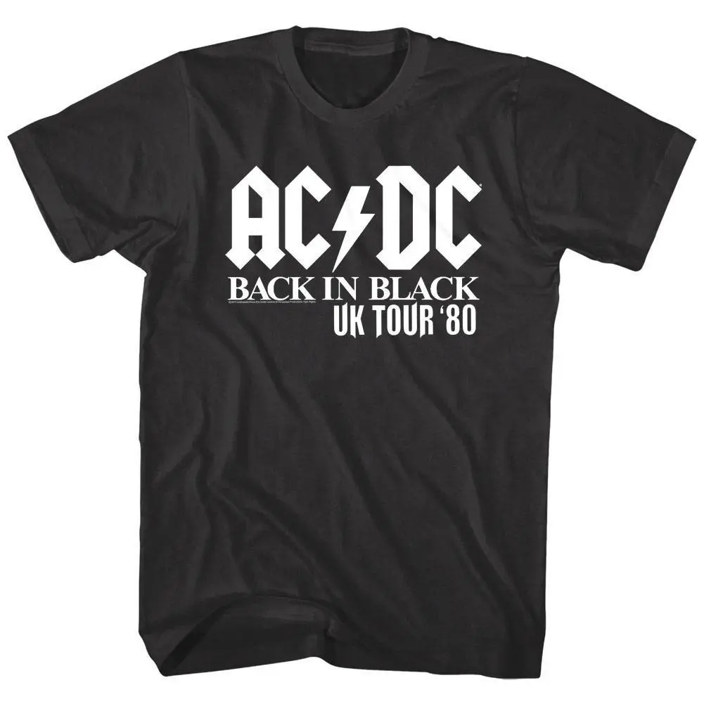 Part Scottish, part Aussie, 100% Rock Legends! The Young brothers and Bon Scott formed the band in Sydney, Australia in 1973 – that means the band is over 50 years old! AC/DC went from Dirty Deeds Done Dirt Cheap on the Highway to Hell to Back to Black in The Flick of the Switch! Rock megastardom followed, AC/DC have sold over 200 million albums worldwide and they are still working on new music. Despite the tragic loss of lead singer Bon Scott, he was replace with Brian Johnson and the band went from strength to strength. Wear some rock history, this cool ACDC Back in Black UK Tour ’80 T-Shirt has a vintage style print with a distressed look as if you bought it at an AC/DC Concert Tour in the 80’s.