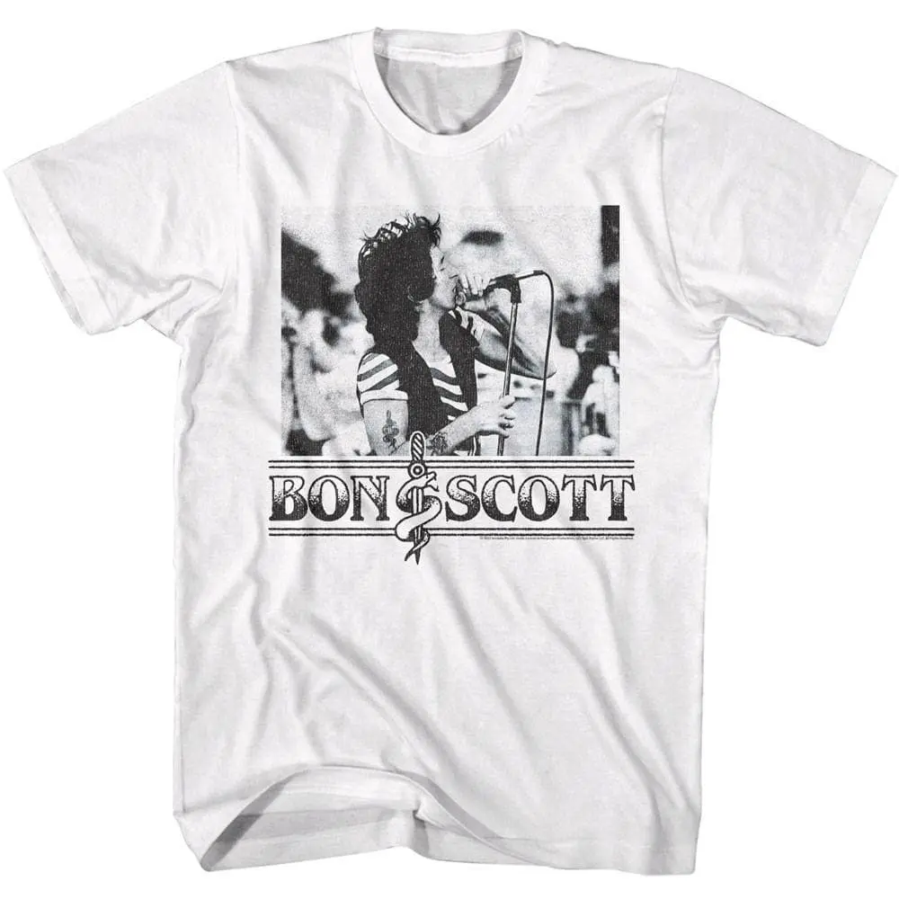 Part Scottish, part Aussie, 100% Rock Legends! The Young brothers and Bon Scott formed the band in Sydney, Australia in 1973 – that means the band is over 50 years old! AC/DC went from Dirty Deeds Done Dirt Cheap on the Highway to Hell to Back to Black in The Flick of the Switch! Rock megastardom followed, AC/DC have sold over 200 million albums worldwide and they are still working on new music. Despite the tragic loss of lead singer Bon Scott, he was replace with Brian Johnson and the band went from strength to strength. Wear some rock history, this cool ACDC Bon Scott Live In Concert T-Shirt has a vintage style print with a distressed look as if you bought it at an AC/DC Concert Tour in the 80’s.