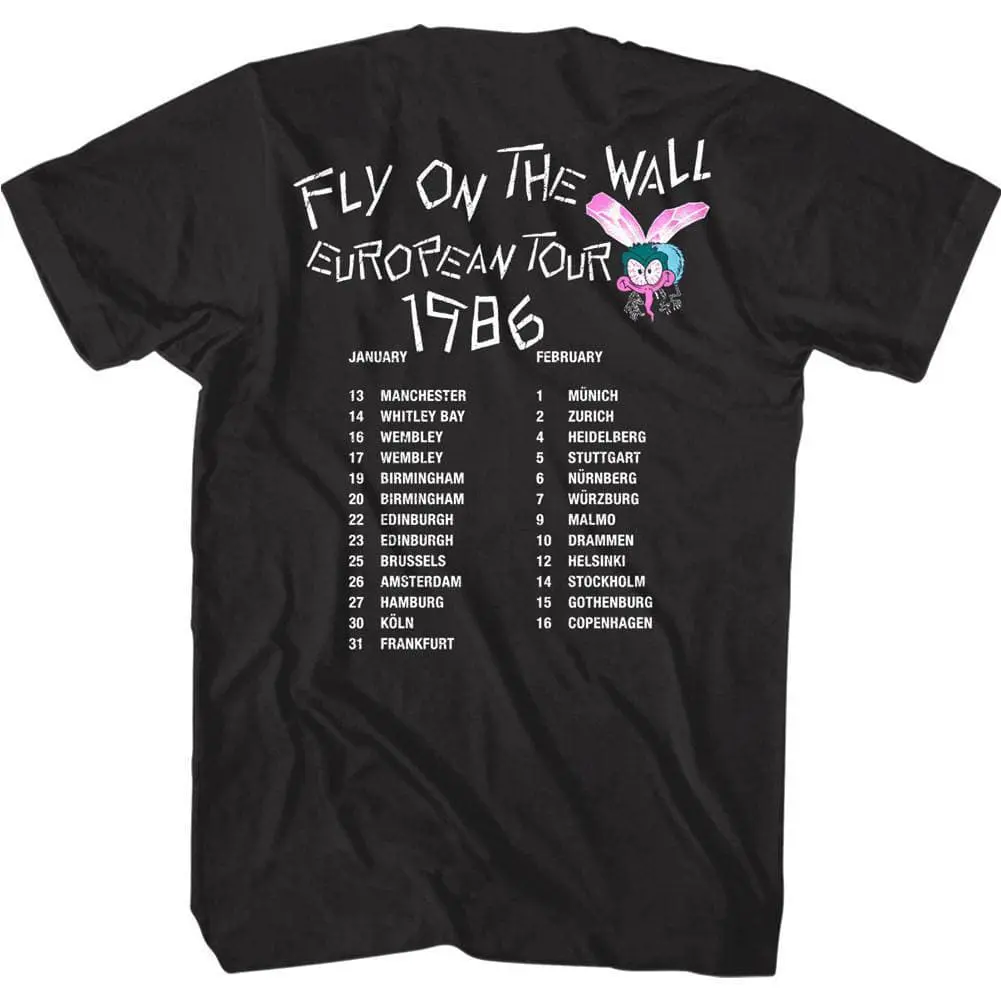 Part Scottish, part Aussie, 100% Rock Legends! The Young brothers and Bon Scott formed the band in Sydney, Australia in 1973 – that means the band is over 50 years old! AC/DC went from Dirty Deeds Done Dirt Cheap on the Highway to Hell to Back to Black in The Flick of the Switch! Rock megastardom followed, AC/DC have sold over 200 million albums worldwide and they are still working on new music. Despite the tragic loss of lead singer Bon Scott, he was replace with Brian Johnson and the band went from strength to strength. Wear some rock history, this cool ACDC Fly On The Wall European Tour 1986 T-Shirt has a vintage style print with a distressed look as if you bought it at an AC/DC Concert Tour in the 80’s.