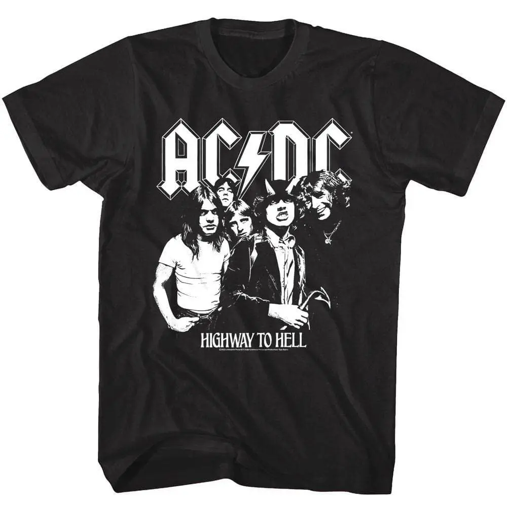 Part Scottish, part Aussie, 100% Rock Legends! The Young brothers and Bon Scott formed the band in Sydney, Australia in 1973 – that means the band is over 50 years old! AC/DC went from Dirty Deeds Done Dirt Cheap on the Highway to Hell to Back to Black in The Flick of the Switch! Rock megastardom followed, AC/DC have sold over 200 million albums worldwide and they are still working on new music. Despite the tragic loss of lead singer Bon Scott, he was replace with Brian Johnson and the band went from strength to strength. Wear some rock history, this cool AC/DC Highway to Hell BW T-Shirt has a vintage style print with a distressed look as if you bought it at an AC/DC Concert Tour in the 80’s.