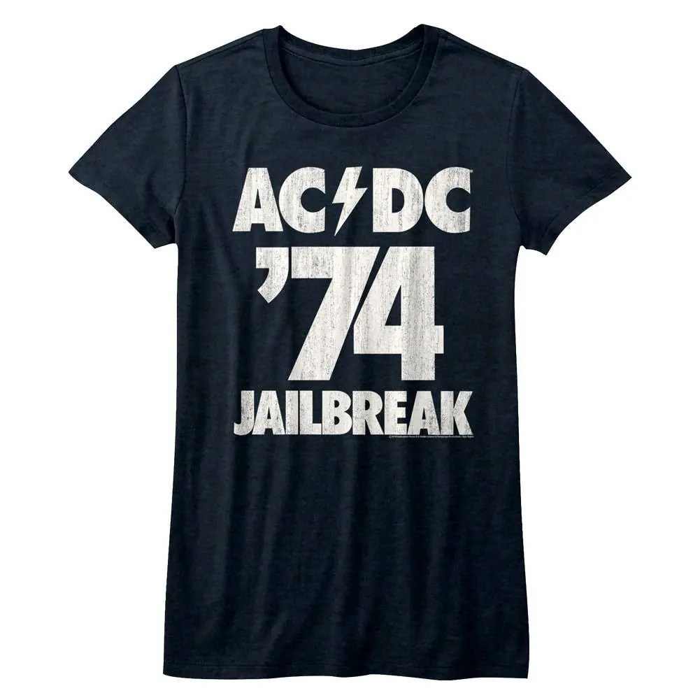 Women’s ACDC “Jailbreak ’74” T-shirt features a vintage-inspired graphic design. Made from soft, breathable cotton, it offers a comfortable fit, perfect for fans to showcase their love for the classic rock band.