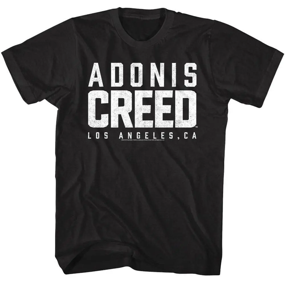 The greatest boxing movie franchise in film history! There are 6 movies following Rocky Balboa (played by Sylvester Stallone) fighting his way up from the streets to the big time. This is followed by the Rocky Creed movies, where Rocky becomes coach and mentor to Adonis Creed (the son of nemesis Apollo Creed from Rocky 1-4). The opposing boxers became notorious heels themselves like Mr. T’s ultra-violent Clubber Lang and the unstoppable Russian, Ivan Drago. The original 6 movies were mostly written and directed by Sly Stallone himself. Legendary movies, memorable characters, invoke the heroic strength of Rocky Balboa with this inspirational boxing Rocky Adonis Creed LA Logo t-shirt and you’ll always have Mighty Mick in your corner.