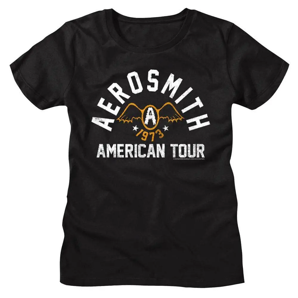 If it feels like Aerosmith has been around forever, they kinda have! The Bad Boys from Boston formed in in 1970, Steven Tyler & Co have churned out hit after hit on 15 successful studio albums – so successful that that Aerosmith are the best-selling American rock band of all time selling over 150 million albums (and counting)! They have won countless awards (4 Grammys, 6 AMA’s, 10 MTV VMA’s) – but who’s counting at this point! If you are a fan of the Bad Boys from Boston then Walk This Way and Get Your Wings… this vintage-style, faded Aerosmith American Tour 1973 T-Shirt is definitely for you, it looks old-school like you got it from a gig in the 80’s.