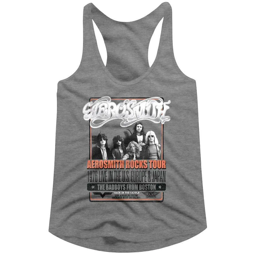 If it feels like Aerosmith has been around forever, they kinda have! The Bad Boys from Boston formed in in 1970, Steven Tyler & Co have churned out hit after hit on 15 successful studio albums – so successful that that Aerosmith are the best-selling American rock band of all time selling over 150 million albums (and counting)! They have won countless awards (4 Grammys, 6 AMA’s, 10 MTV VMA’s) – but who’s counting at this point! If you are a fan of the Bad Boys from Boston then Walk This Way and Get Your Wings… this vintage-style, faded Aerosmith Rocks Tour 1976 Europe Japan Tank top is definitely for you, it looks old-school like you got it from a gig in the 80’s.