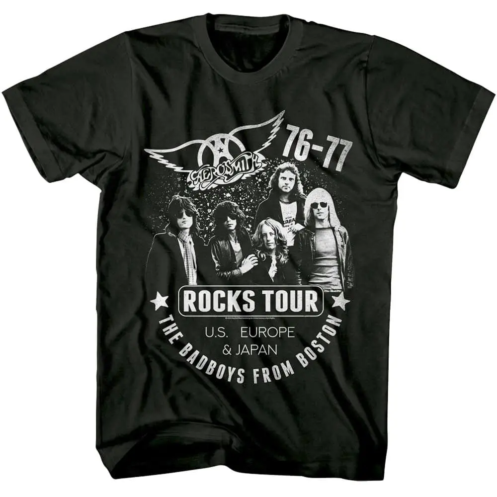 If it feels like Aerosmith has been around forever, they kinda have! The Bad Boys from Boston formed in in 1970, Steven Tyler & Co have churned out hit after hit on 15 successful studio albums – so successful that that Aerosmith are the best-selling American rock band of all time selling over 150 million albums (and counting)! They have won countless awards (4 Grammys, 6 AMA’s, 10 MTV VMA’s) – but who’s counting at this point! If you are a fan of the Bad Boys from Boston then Walk This Way and Get Your Wings… this vintage-style, faded Aerosmith Rocks World Tour 76-77 T-Shirt is definitely for you, it looks old-school like you got it from a gig in the 80’s.