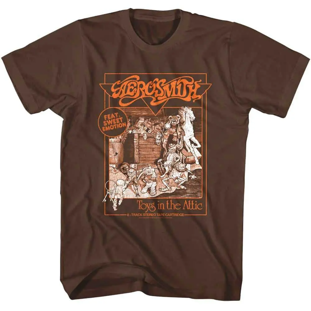 If it feels like Aerosmith has been around forever, they kinda have! The Bad Boys from Boston formed in in 1970, Steven Tyler & Co have churned out hit after hit on 15 successful studio albums – so successful that that Aerosmith are the best-selling American rock band of all time selling over 150 million albums (and counting)! They have won countless awards (4 Grammys, 6 AMA’s, 10 MTV VMA’s) – but who’s counting at this point! If you are a fan of the Bad Boys from Boston then Walk This Way and Get Your Wings… this vintage-style, faded Aerosmith Toys in the Attic 8-Track T-Shirt is definitely for you, it looks old-school like you got it from a gig in the 80’s.