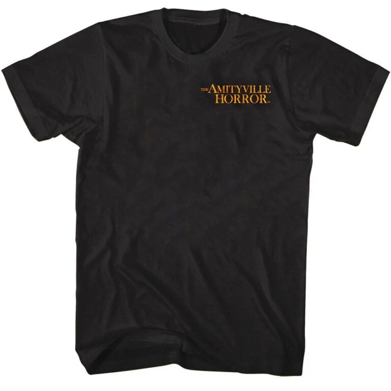 If you love a haunted house then you know about the Amityville Horror. Thirty miles outside of New York City, nestled in the Long Island town of Amityville, stands the house forever linked to the Amityville Horror phenomenon. The estate at 112 Ocean Avenue, Amityville, New York was the scene of a mass murder where entire family was shot while they were asleep. The Amityville Horror is a horror film based on the novel and is a remake of the 1979 film, there are now 22 movie versions and countless TV shows about the murders and subsequent hauntings. If you love haunted houses, you will love this Amityville Horror Haunted House Logo T-Shirt, it’s hauntingly cool.