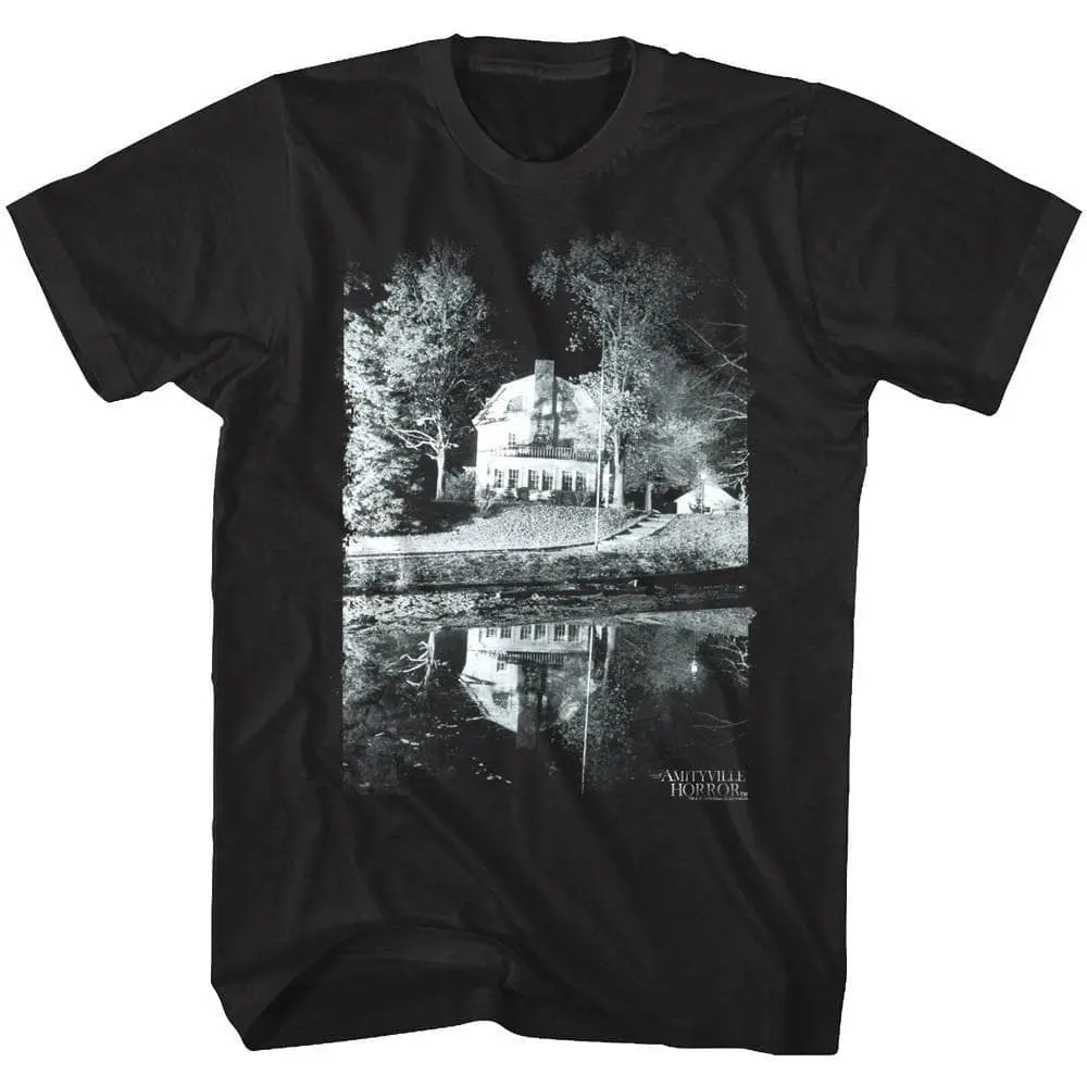 If you love a haunted house then you know about the Amityville Horror. Thirty miles outside of New York City, nestled in the Long Island town of Amityville, stands the house forever linked to the Amityville Horror phenomenon. The estate at 112 Ocean Avenue, Amityville, New York was the scene of a mass murder where entire family was shot while they were asleep. The Amityville Horror is a horror film based on the novel and is a remake of the 1979 film, there are now 22 movie versions and countless TV shows about the murders and subsequent hauntings. If you love haunted houses, you will love this Amityville Horror House Lake Reflection T-Shirt, it’s hauntingly cool.