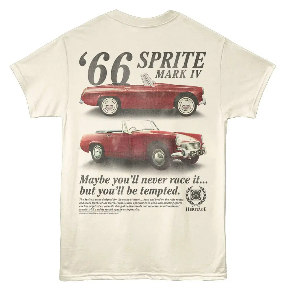 Calling all vintage gearheads! British Motor Heritage (BMH) has been keeping classic British cars alive since 1975, crafting bodies and parts with the same tools and skills that built the originals. BMH is the biggest name in the industry, with access to authentic production details and the know-how to recreate the parts you thought were long gone. If vintage rides are your passion, throw on this British Motor Heritage Austin Healey Sprite Mark IV 66 ad T-Shirt and wear it like a badge of honor. Real cars deserve real parts, and real fans deserve real style.
