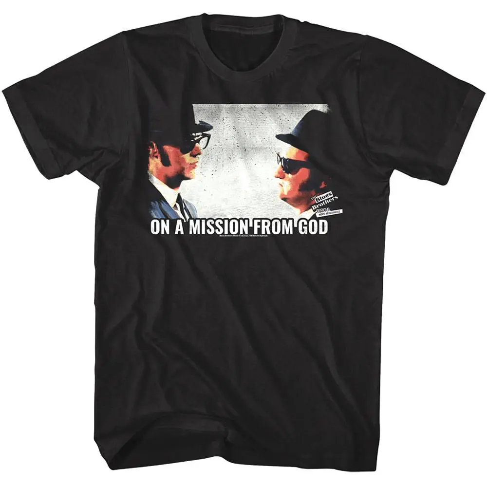 The Blues Brothers is probably the most successful movie that came from a Saturday Night Live (SNL) sketch. Starring John Belushi as “Joliet” Jake Blues and Dan Aykroyd as his brother Elwood and directed by John Landis. The Blues Brothers, Jake and Elwood are “on a Mission from God” to save the orphanage in which they were raised. The movie features musical performances by legendary stars such as James Brown, Cab Calloway, Aretha Franklin, Ray Charles, Chaka Khan, and John Lee Hooker. Starring the tragic Belushi after his stand-out hit, Animal House, The Blues Bros was a massive critical and commercial success in 1980 and is now considered a cult classic. This vintage style graphic Blues Brothers On a Mission from God Men’s T-Shirt looks like it came from a smokey jazz bar in the 80’s. Hit it! 🕶️