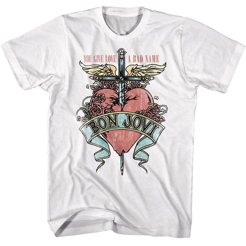 This officially licensed Bon Jovi t-shirt features a vintage-inspired design with a distressed print finish. Comfortable, easy to wear, and built for everyday use, it delivers a worn-in look that feels straight out of a classic tour era. Features tattoo artwork with a faded, vintage-style print.
