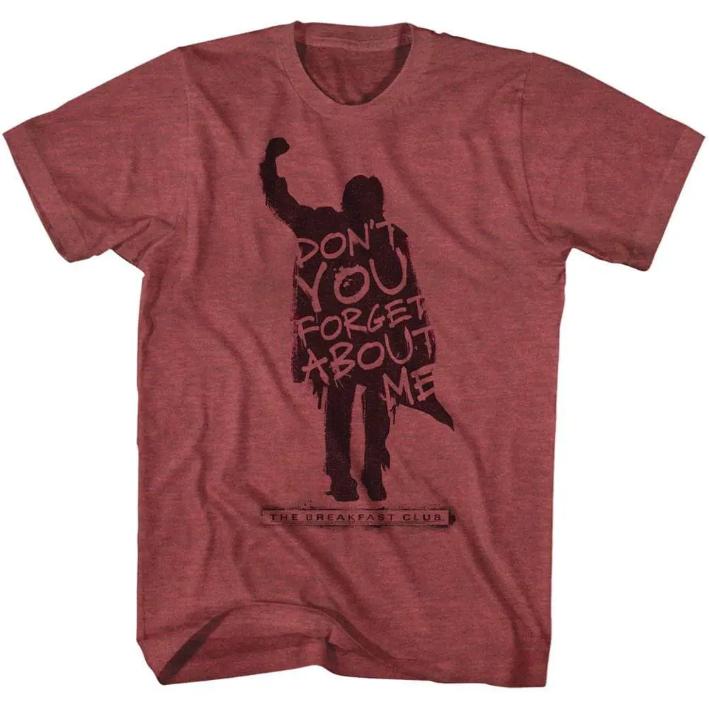 The legendary John Hughes created several cult-classic coming-of-age school comedies (like Sixteen Candles and Ferris Bueller’s Day Off), The Breakfast Club from 1985 is one of his best. Breakfast Club starred the original brat pack in Emilio Estevez, Anthony Michael Hall, Judd Nelson, Molly Ringwald and Ally Sheedy as teenagers from different high school cliques who spend a Saturday in detention with their authoritarian assistant principal. If you grew up in the 80’s throw on this awesome graphic Breakfast Club Don’t You Forget About Me Silhouette t-shirt, throw a fist to the sky and walk in slow-motion while listening to Don’t You (Forget About Me) – we all did it!