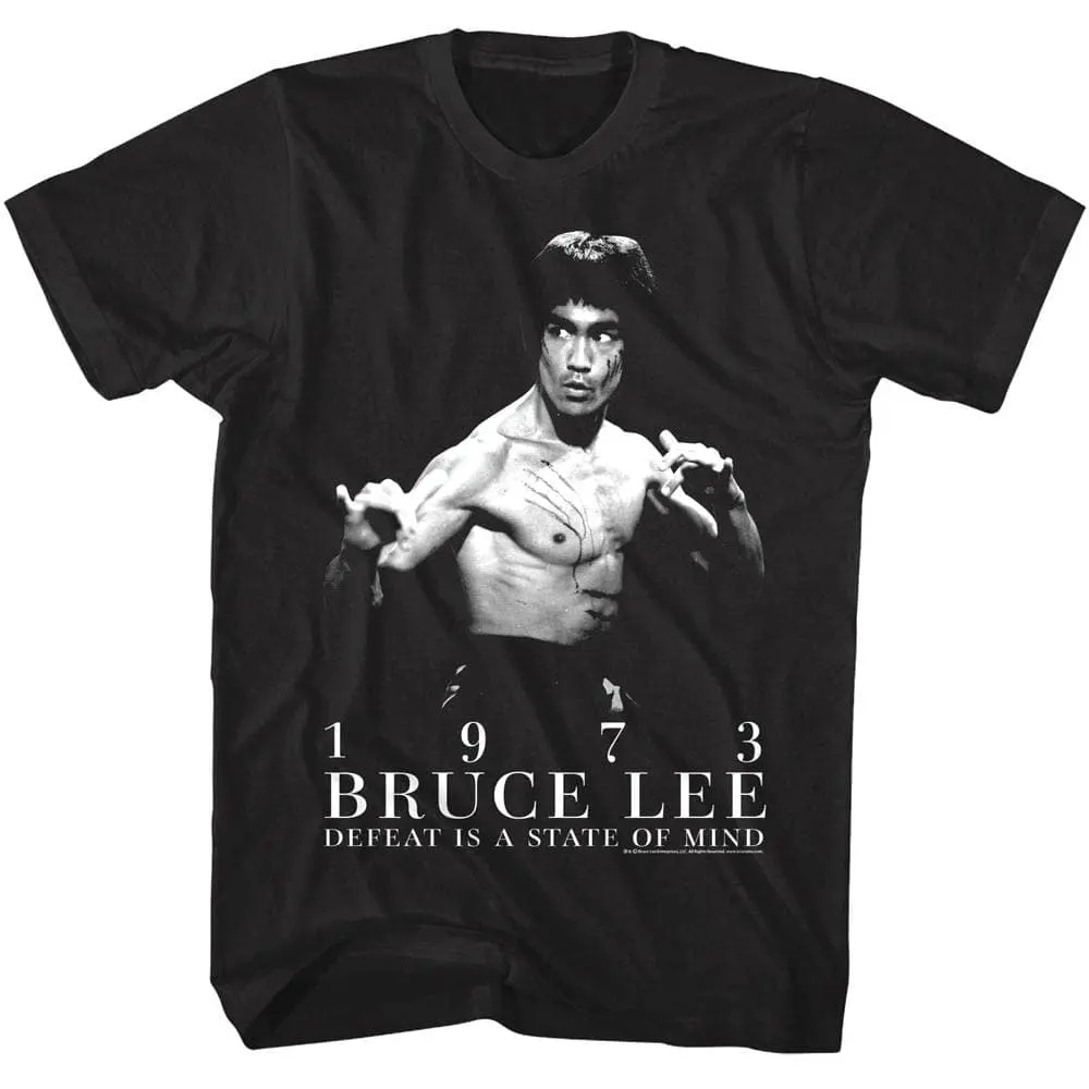 The undisputed most famous martial artist of all time? Lee Jun-fan AKA Bruce Lee was a Hong Kong-American actor, director, martial artist, instructor, philosopher and all-round legend! He was the founder of Jeet Kune Do, a hybrid martial arts philosophy drawing from different combat disciplines that is often credited with paving the way for modern MMA. Bruce Lee is considered by critics and the media to be the most influential martial artist of all time and a pop culture icon of the 20th century, who bridged the gap between East and West. Wear some martial arts history, this epic graphic Bruce Lee Defeat is a State of Mind 1973 t-shirt has a vintage style print with a distressed look as if you bought it in the 70’s