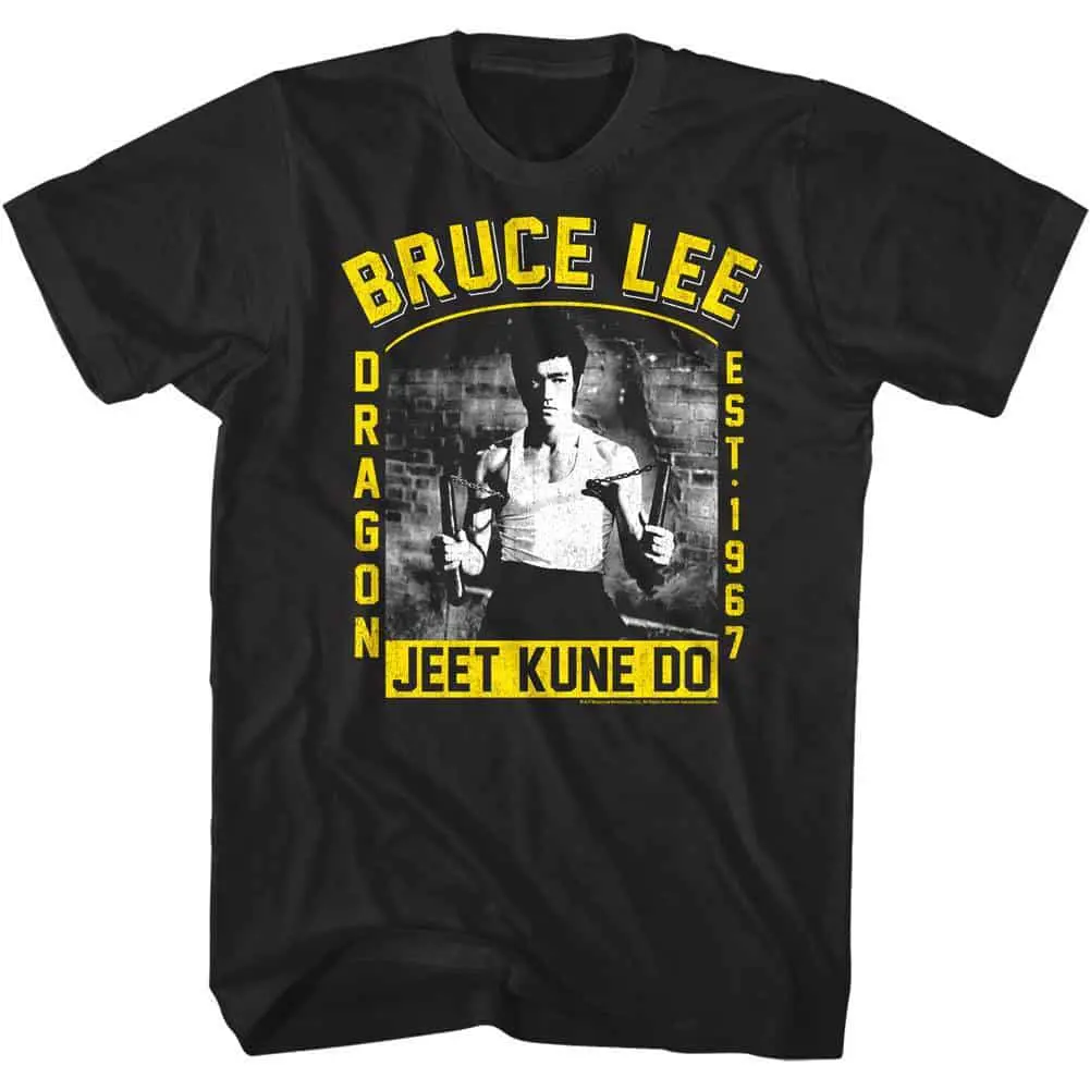 The undisputed most famous martial artist of all time? Lee Jun-fan AKA Bruce Lee was a Hong Kong-American actor, director, martial artist, instructor, philosopher and all-round legend! He was the founder of Jeet Kune Do, a hybrid martial arts philosophy drawing from different combat disciplines that is often credited with paving the way for modern MMA. Bruce Lee is considered by critics and the media to be the most influential martial artist of all time and a pop culture icon of the 20th century, who bridged the gap between East and West. Wear some martial arts history, this epic graphic Bruce Lee Dragon Est 1967 t-shirt has a vintage style print with a distressed look as if you bought it in the 70’s