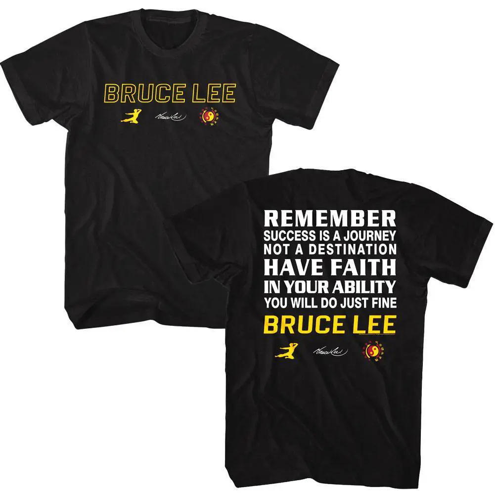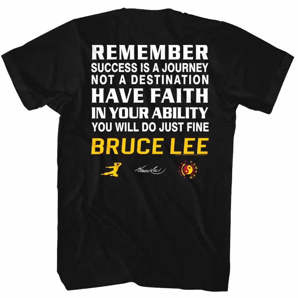 The undisputed most famous martial artist of all time? Lee Jun-fan AKA Bruce Lee was a Hong Kong-American actor, director, martial artist, instructor, philosopher and all-round legend! He was the founder of Jeet Kune Do, a hybrid martial arts philosophy drawing from different combat disciplines that is often credited with paving the way for modern MMA. Bruce Lee is considered by critics and the media to be the most influential martial artist of all time and a pop culture icon of the 20th century, who bridged the gap between East and West. Wear some martial arts history, this epic graphic Bruce Lee Remember Success is a Journey t-shirt has a vintage style print with a distressed look as if you bought it in the 70’s