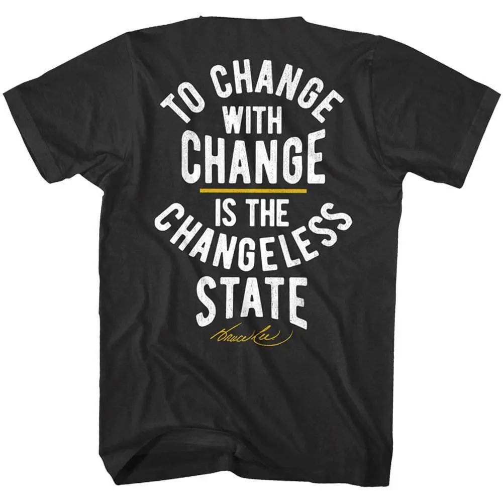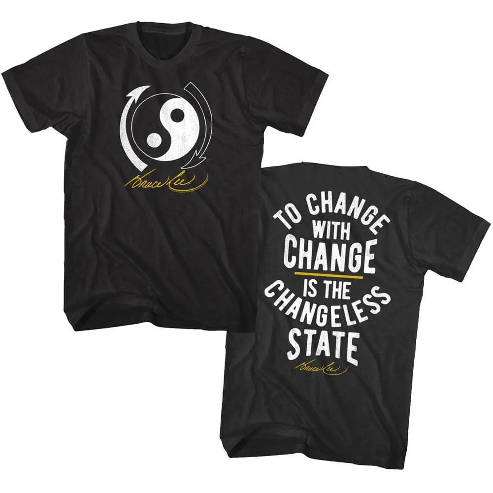 The undisputed most famous martial artist of all time? Lee Jun-fan AKA Bruce Lee was a Hong Kong-American actor, director, martial artist, instructor, philosopher and all-round legend! He was the founder of Jeet Kune Do, a hybrid martial arts philosophy drawing from different combat disciplines that is often credited with paving the way for modern MMA. Bruce Lee is considered by critics and the media to be the most influential martial artist of all time and a pop culture icon of the 20th century, who bridged the gap between East and West. Wear some martial arts history, this epic graphic Bruce Lee Yin Yang Changeless State t-shirt has a vintage style print with a distressed look as if you bought it in the 70’s