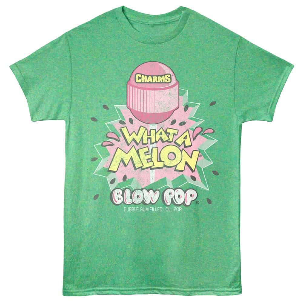 Another American candy institution – they’ve been around since 1907. A Tootsie Roll is a mildly chocolate-flavored taffy-like candy that has been around for a century. Not quite caramel, not quite taffy, not quite chocolate, and they don’t melt – a Tootsie Roll is unique. Did you know that Tootsie Roll has been mentioned in more songs than any other candy. If you grew up chewing a Tootsie Roll then you are part of the Candy Societee then this Captain Tootsie Roll Charms Blow Pop What A Melon T-shirt is for you.