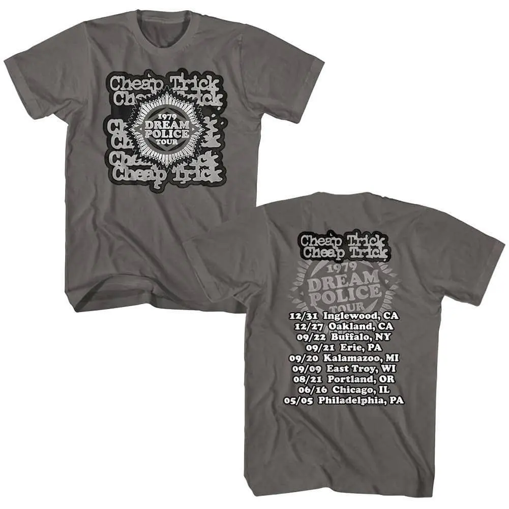Even though they started life in Rockford, Illinois, Cheap Trick found success in a roundabout way – they first found fame in Japan before more widespread acclaim. Cheap Trick are renown live performers (even today), they have toured consistently, well over 5,000 gigs til now. From Budokan to I want you to Want Me, Cheap Trick’s songs have garnered much radio air-time. If you have ever been to a Cheap Trick show you’ll instantly recognise the energy – they know how to rock a show. This vintage-style Cheap Trick Dream Police US Tour 1979 T-Shirt looks like it came from an old-school gig in the 80’s and I want you to want this tee!