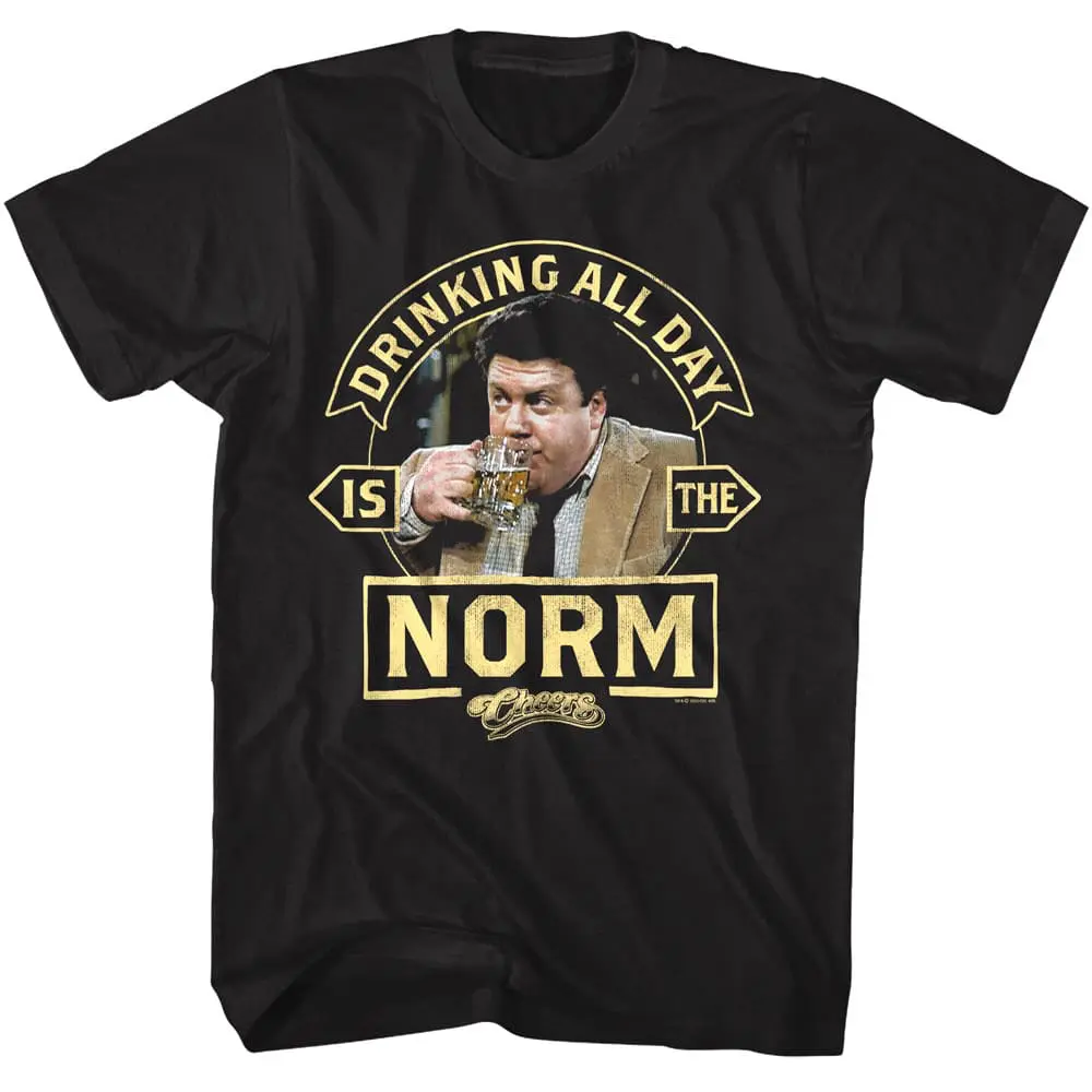 Where does everybody know your name? The Cheers bar in Boston of course! This sitcom was set in the Cheers bar (obviously), revolving around a womanizing bartender called Sam Malone (Ted Danson) and ran for a full 11 years! In fact, Cheers eventually became a Nielsen ratings juggernaut in the United States, earning a top-10 rating during 8 of its 11 seasons. Fun fact, it was so popular that the series also produced three spin-offs: The Tortellis, Wings, and Frasier; and a Spanish remake. If you have a local watering hole, where everybody indeed does know your name then this graphic Cheers Drinking is the Norm t-shirt suits you to a tee!