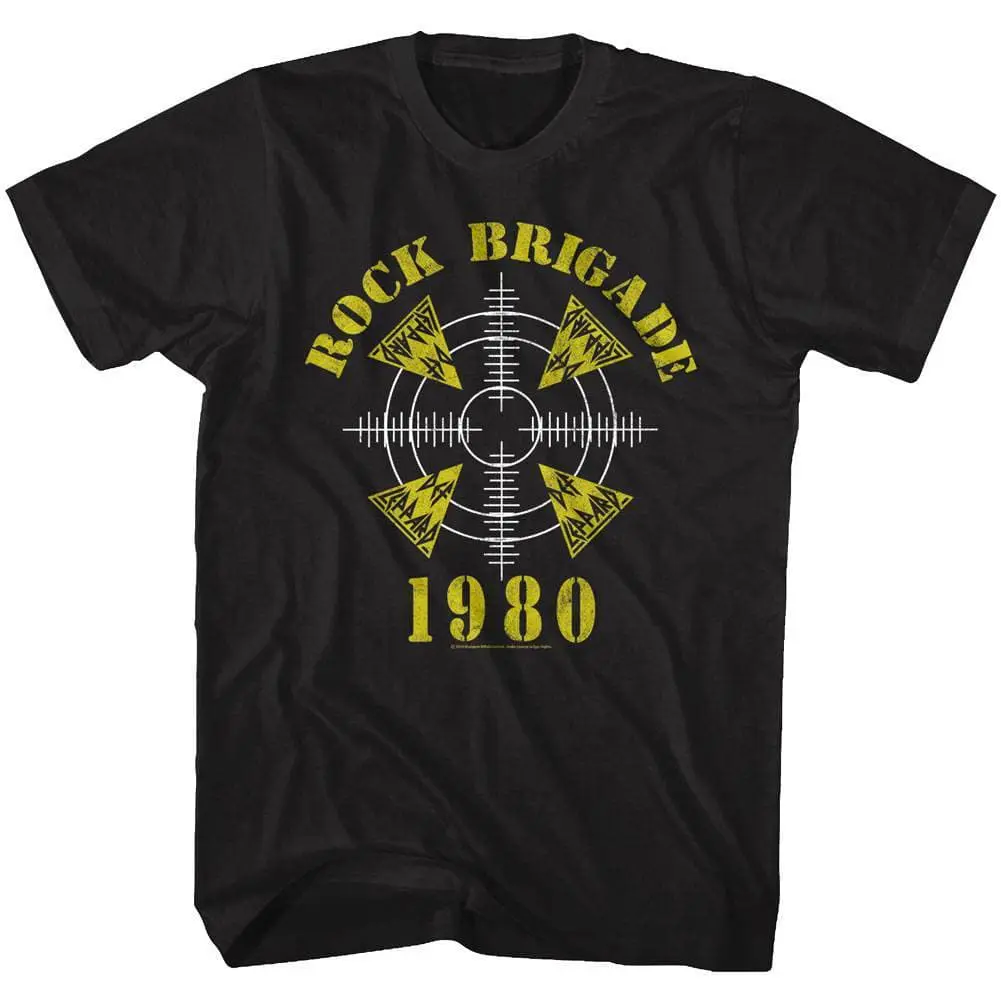 Listen to the Hysteria and let it Adrenalize you, it can only be the Sheffield (UK) rockers Def Leppard! Yeah! They won’t leave you High n’ Dry as you rock On Through the Night! Def Leppard have sold over 100 million albums worldwide and were inducted in the Rock and Roll Hall of Fame in 2019 and the Societees Rock T-Shirt Hall of Fame in 2021. The Brit rockers had a unique rise to the top in their 49 years (so far), featuring a 1-armed drummer, a tragic death, but Def Leppard regrouped and reinvented successfully – they still tour today. Wear some rock nostalgia, this cool Def Leppard Rock Brigade Tour 1980 T-Shirt is vintage style print with a distressed look as if you bought it at an Def Leppard Rock Concert in the 80’s.