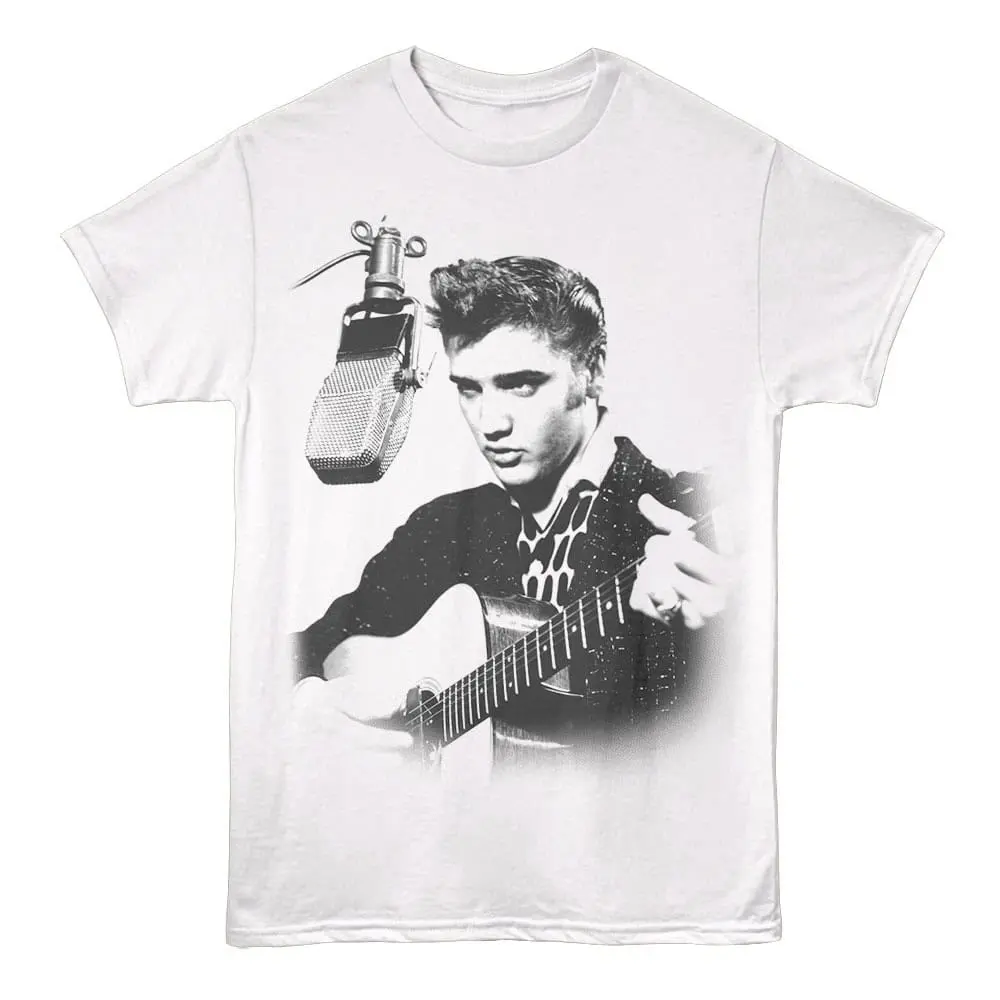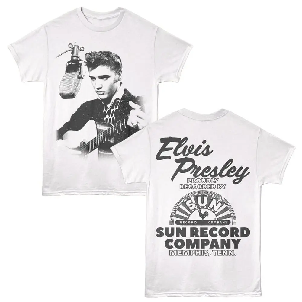 The undisputed “King of Rock and Roll“, Elvis Presley is regarded as one of the most significant cultural icons of the 20th century – so famous we know him by his first name only! Elvis became known for his sexually charged dance moves as much as his singing style and acting career. But it all began back in August 1953, when Presley checked in to the Sun Records studio in Memphis to record an acetate, allegedly to get noticed by owner Sam Phillips, the rest as they say, is history. Elvis was a hit-making machine, as well as Hollywood movie star – he was so iconic he left an indelible legacy at Graceland and beyond. This old-school graphic Elvis Presley proudly Recorded by Sun Records T-shirt has a vintage-style look to it as if you bought it at a show in the 60’s.