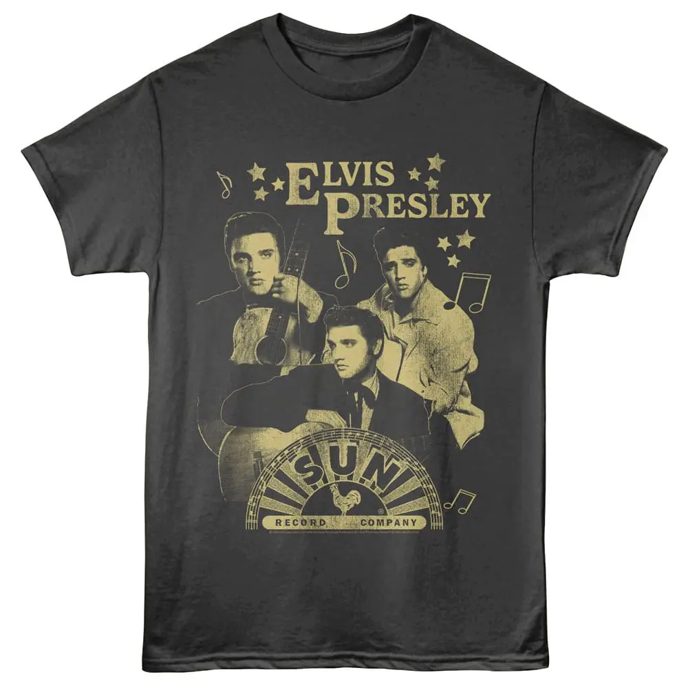 The undisputed “King of Rock and Roll“, Elvis Presley is regarded as one of the most significant cultural icons of the 20th century – so famous we know him by his first name only! Elvis became known for his sexually charged dance moves as much as his singing style and acting career. But it all began back in August 1953, when Presley checked in to the Sun Records studio in Memphis to record an acetate, allegedly to get noticed by owner Sam Phillips, the rest as they say, is history. Elvis was a hit-making machine, as well as Hollywood movie star – he was so iconic he left an indelible legacy at Graceland and beyond. This old-school graphic Elvis Triple Threat T-shirt has a vintage-style look to it as if you bought it at a show in the 60’s.