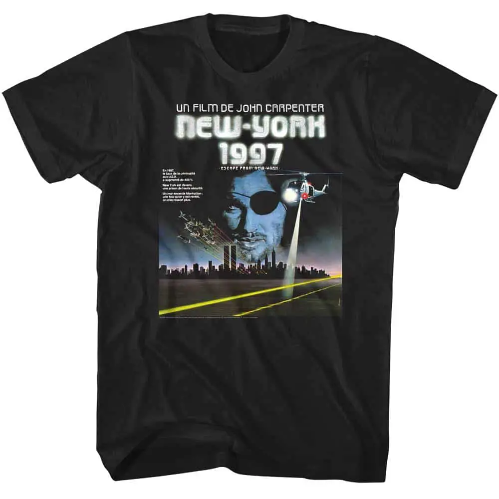 The title is as literal as possible, Escape from New York is set in the desolate future world of 1997 in a crime-ridden United States, which has converted Manhattan Island in New York City into the country’s maximum-security prison. Air Force One is hijacked by terrorists and is purposely crashed in New York City. Ex-soldier and current federal prisoner Snake Plissken (Kurt Russell) is given just 24 hours to go in and rescue the President of the United States, after which, if successful, Snake will be pardoned and released. EFNY is another cult classic by John Carpenter (yep from Halloween and They Live fame) that spawned a sequel Escape from LA. Vintage-style 80’s t-shirt for vintage 80’s movie fans, this cool graphic Escape From New York French Release T Shirt will bring you back to the “futuristic 90’s”.