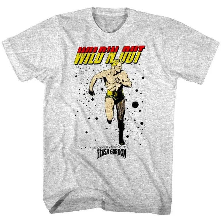 Who can save you now pathetic earthlings…. Flash AAAAA-AHHHH! A space opera from a comic strip to a cartoon then a movie, a Queen song and multiple TV series – Flash Gordon is an enduring character (over 90 years old now). Flash travels the universe battling the evil villain Ming the Merciless from planet Mongo with his trusted allies Dale Arden and Hans Zarkov. Team Flash or Team Ming, you can choose with this intergalactic graphic Flash Gordon Running Wild t-shirt.
