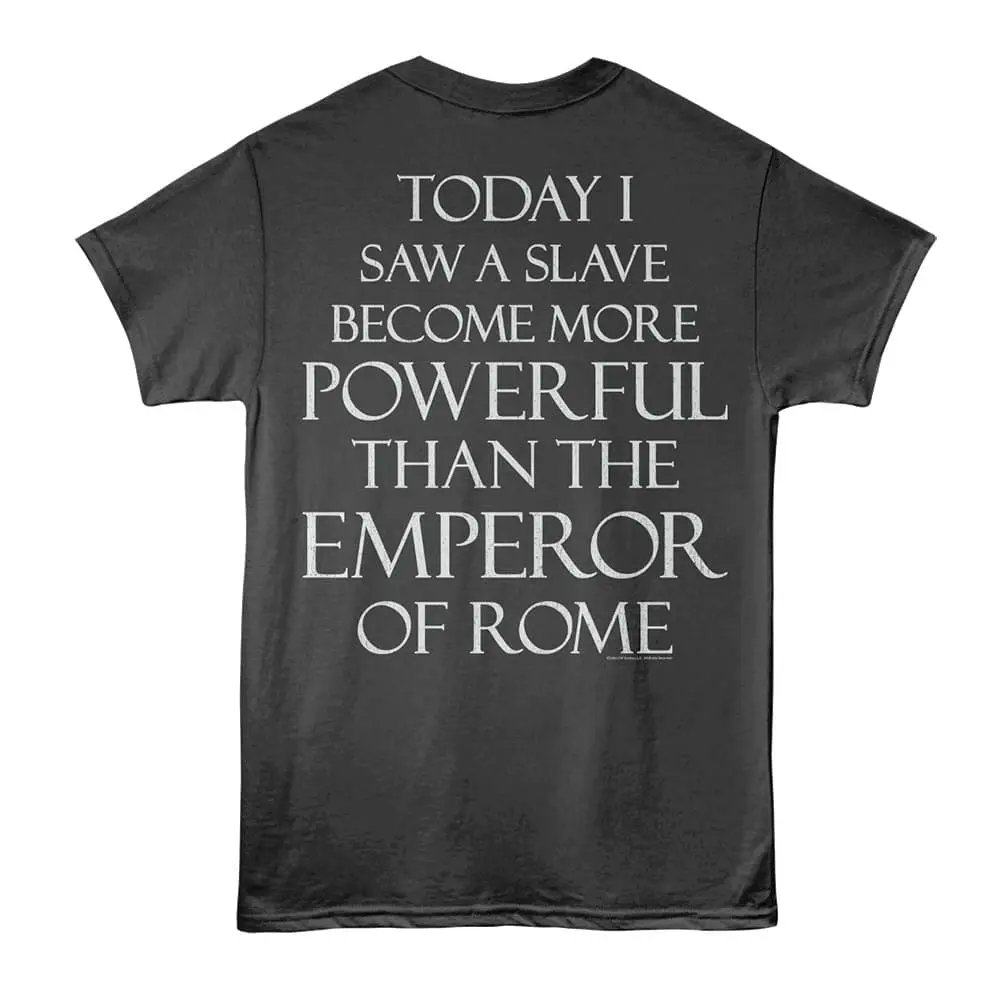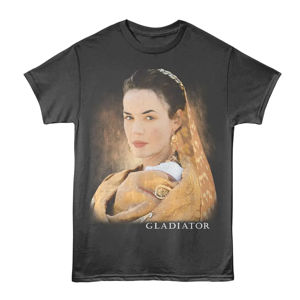 Loosely based on real events during the Roman Empire (but hey who remembers anyway), this Gladiator is action movie of epic proportions and not just for history geeks! This biopic won 5 Oscars and 60 other awards, Gladiator follows the vengeance of once-powerful Roman general Maximus (a breakout performance from Russell Crowe). The Emperor Marcus Aurelius’s son Commodus (Joaquin Phoenix) murders not only his father to seize the throne, but he also kills Maximus’s family and reduces him to slavery. Battered & betrayed, Maximus trains to be a gladiator and fights in tournaments to get revenge on Commodus. What we do in life echoes on your epic graphic Gladiator Lucilla saw a Slave t-shirt and you too can win the crowd and your freedom!