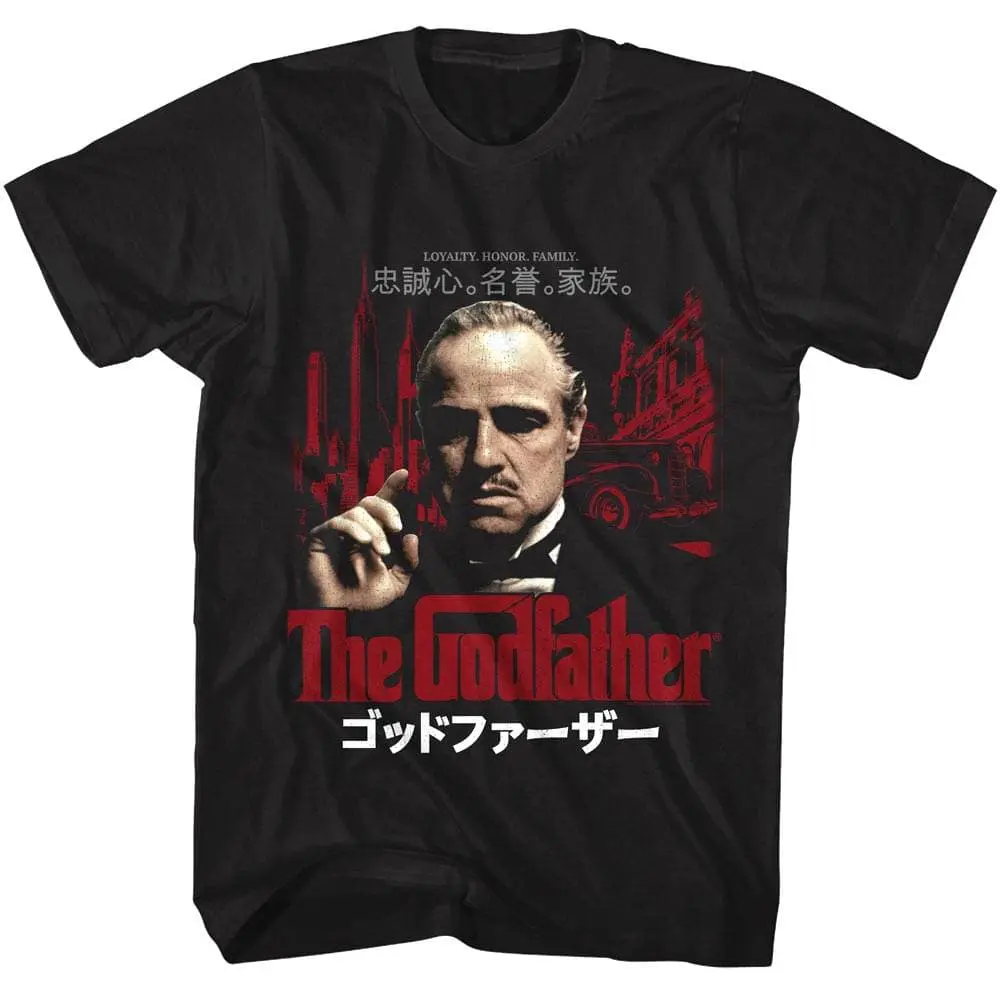 The legendary crime trilogy, The Godfather, was the masterpiece directed by Francis Ford Coppola and inspired by the novel by Italian American author Mario Puzo enjoy cult status among Mafia movie fans. The Godfather films follow the trials of the Italian American mafia Corleone family whose patriarch, Don Vito Corleone played by Marlon Brando, rises to be a major figure in American organized crime. The Don’s son, Michael Corleone played by Al Pacino, wants to stay out of the family business but is gradually drawn in, his journey goes from New York to Sicily and back again. So leave the cannoli and take this vintage style Godfather Japanese Honor t-shirt, this is an offer you cannot refuse