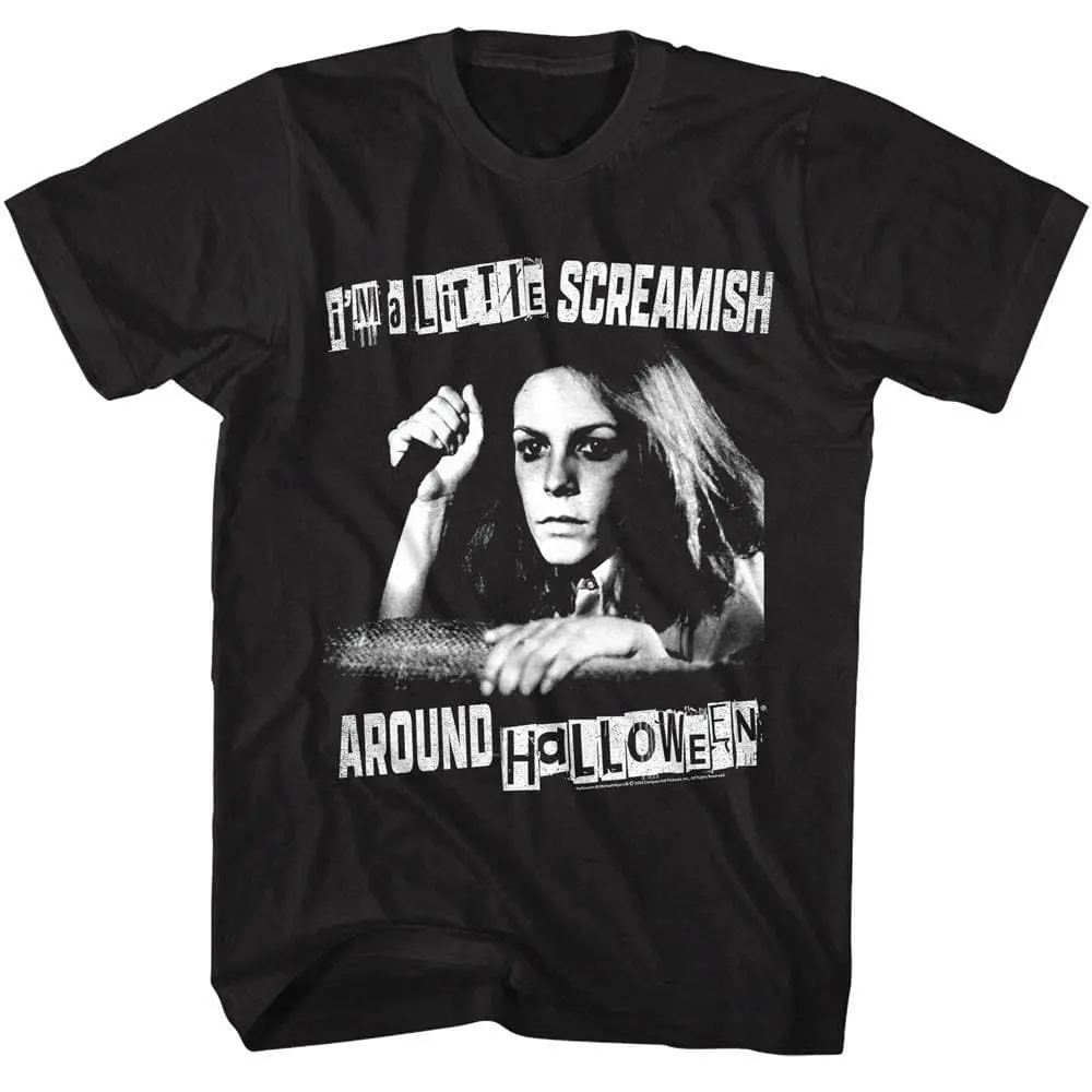 This epic Horror franchise that spawned them all! The Halloween horror franchise consists of 11 films, as well as novels, comic books, a video game, not to mention the masks! Serial killer Michael Myers who was committed to a sanitarium as a child, escapes to stalk and kill the people in his hometown of Haddonfield, Illinois. Michael Myers killings occur on Halloween night which is where the name comes from obviously. The Halloween franchise has inspired a long line of slasher films and the original “final girl“ in Laurie Strode (played by Jamie Lee Curtis). For all vintage horror fans this graphic Halloween A Little Screamish T-Shirt captures all the vintage grittiness of the 1978 original movie.