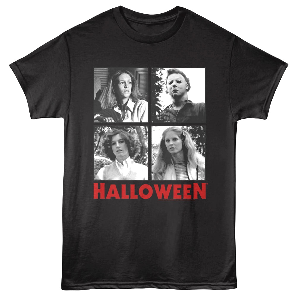 This epic Horror franchise that spawned them all! The Halloween horror franchise consists of 11 films, as well as novels, comic books, a video game, not to mention the masks! Serial killer Michael Myers who was committed to a sanitarium as a child, escapes to stalk and kill the people in his hometown of Haddonfield, Illinois. Michael Myers killings occur on Halloween night which is where the name comes from obviously. The Halloween franchise has inspired a long line of slasher films and the original “final girl“ in Laurie Strode (played by Jamie Lee Curtis). For all vintage horror fans this graphic Halloween Celebrity Squares T-Shirt captures all the vintage grittiness of the 1978 original movie.