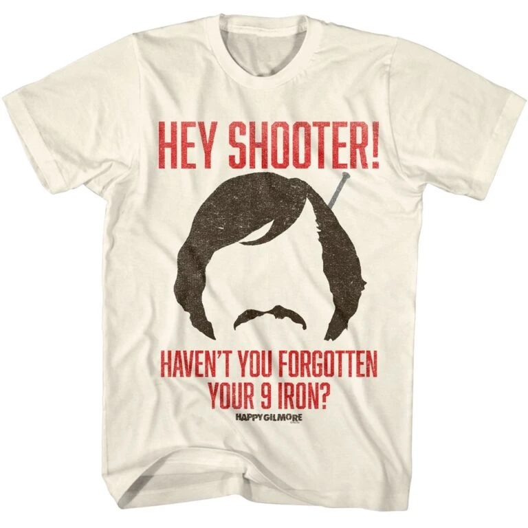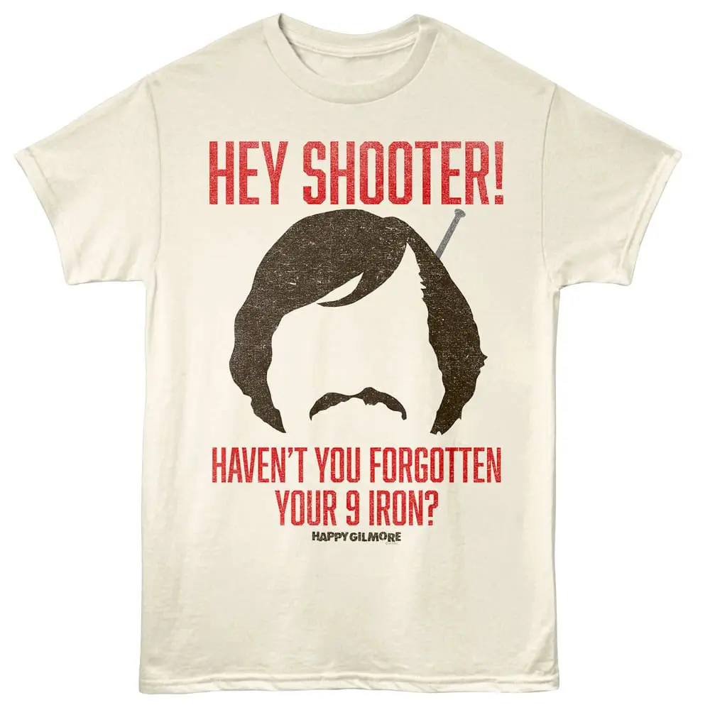 If you love your typical Adam Sandler slapstick comedies then you will love his 96 sports comedy Happy Gilmore (and it’s recent sequel) that takes on the world of golf. Happy Gilmore (played by Sandler) is an unsuccessful ice-hockey player who turns to golf. Happy ruffles the feathers of arrogant golf pro Shooter McGavin for his lack of golf etiquette and his hockey slapshot golf drive! Did you know that Happy Gilmore won an MTV Movie Award for Best Fight! This comedy graphic Happy Gilmore Forgotten Your 9 Iron T-Shirt captures the silly Sandler quotes for you.