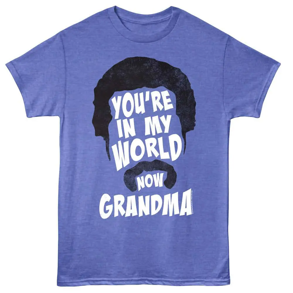 If you love your typical Adam Sandler slapstick comedies then you will love his 96 sports comedy Happy Gilmore (and it’s recent sequel) that takes on the world of golf. Happy Gilmore (played by Sandler) is an unsuccessful ice-hockey player who turns to golf. Happy ruffles the feathers of arrogant golf pro Shooter McGavin for his lack of golf etiquette and his hockey slapshot golf drive! Did you know that Happy Gilmore won an MTV Movie Award for Best Fight! This comedy graphic Happy Gilmore You’re in My World Now Grandma T-Shirt captures the silly Sandler quotes for you.