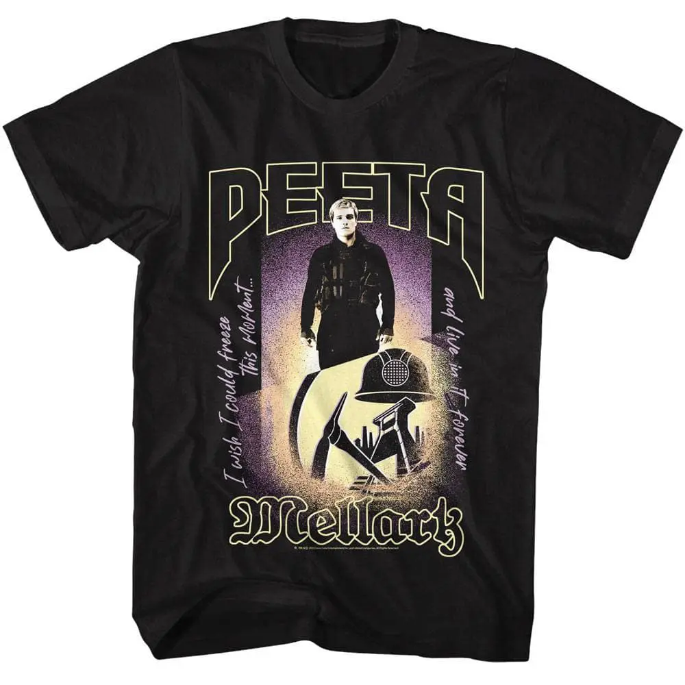 Following the release of Suzanne Collins’s novel The Hunger Games in 2008, Hollywood studios began adapting the book into film. The trilogy that followed grossed over $3 billion. Leading an all-star cast is Jennifer Lawrence as Katniss Everdeen who volunteers to compete in the Hunger Games: a nationally televised event in which the ‘tributes’ fight each other to the death until one survivor remains. I won’t spoil it, but Katniss stars in all 4 movies! The 5th Hunger Games movie released in 2023 is the much-anticipated prequel. Whether your a fan of the awesome movies or the ground-breaking books, this Hunger Games Peeta Mellark Freeze This Moment T-Shirt will make you stand out from the rest.