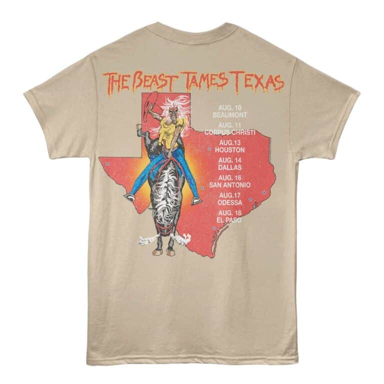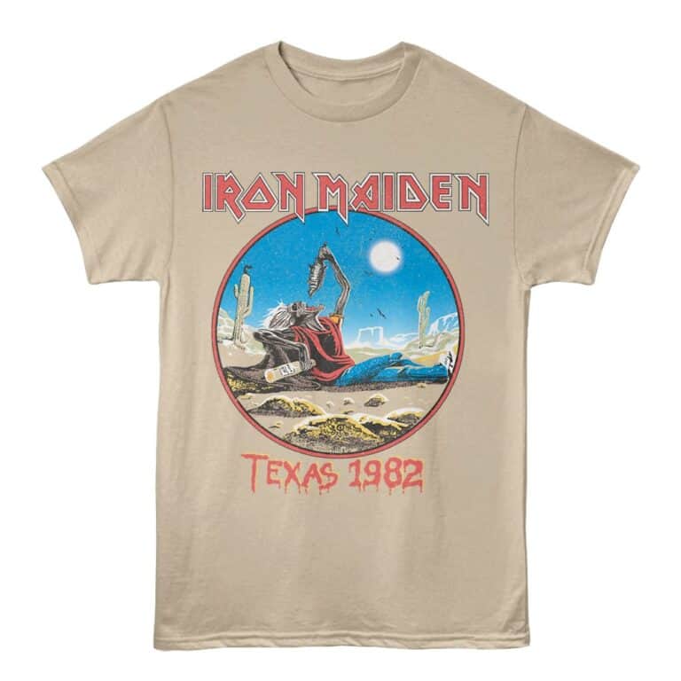 British music heavyweights Iron Maiden were formed on Christmas Day in East London in 1975. Iron Maiden are true pioneers of the new wave of British heavy metal (NWOBHM) movement, they achieved initial success during the early 1980s and became one of the all-time greatest Heavy Metal bands of all time. Bruce Dickinson and his Iron Maiden bandmates released 18 studio albums, 41 albums, 47 singles, winning multiple awards and selling over 130 million copies of their albums worldwide, despite minimal radio and mainstream media support. A mainstay for all true metal fans, you gotta see this scary-cool Iron Maiden Beast Tames Texas Tour 82 T-Shirt in vintage style with a faded print so it looks as though you got it at a gig in the 80’s. This t-shirt is only for fans of Eddie, and if you don’t know, then you’re in the wrong place
