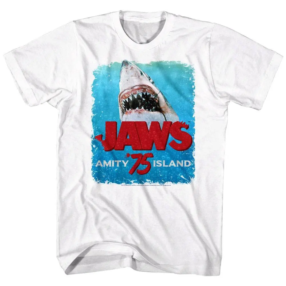 If you don’t know Jaws then where have you been hiding? This was the original blockbuster movie back in 1975 that launched this shark-based, natural horror movie series with a bang – in fact no horror movie had such a mainstream impact before. Celebrating it’s 50th Anniversary, the first Jaws movie is about a great white shark who attacks people off the coast of Amity Island, New England. The original Jaws film was based on the novel by Peter Benchley which itself was inspired by shark attacks in the rivers around New York and Massachusetts. If you love Shark week then this Jawesome graphic Jaws Shark Amity Island ’75 T-Shirt will help you navigate Great White’s – just stay outta the water!