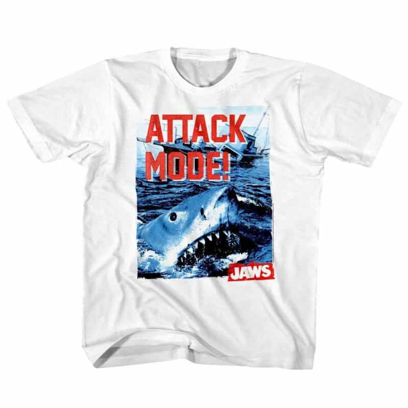If you don’t know Jaws then where have you been hiding? This was the original blockbuster movie back in 1975 that launched this shark-based, natural horror movie series with a bang – in fact no horror movie had such a mainstream impact before. Celebrating it’s 50th Anniversary, the first Jaws movie is about a great white shark who attacks people off the coast of Amity Island, New England. The original Jaws film was based on the novel by Peter Benchley which itself was inspired by shark attacks in the rivers around New York and Massachusetts. If you love Shark week then this Jawesome graphic Jaws Shark Attack Mode T-Shirt will help you navigate Great White’s – just stay outta the water!