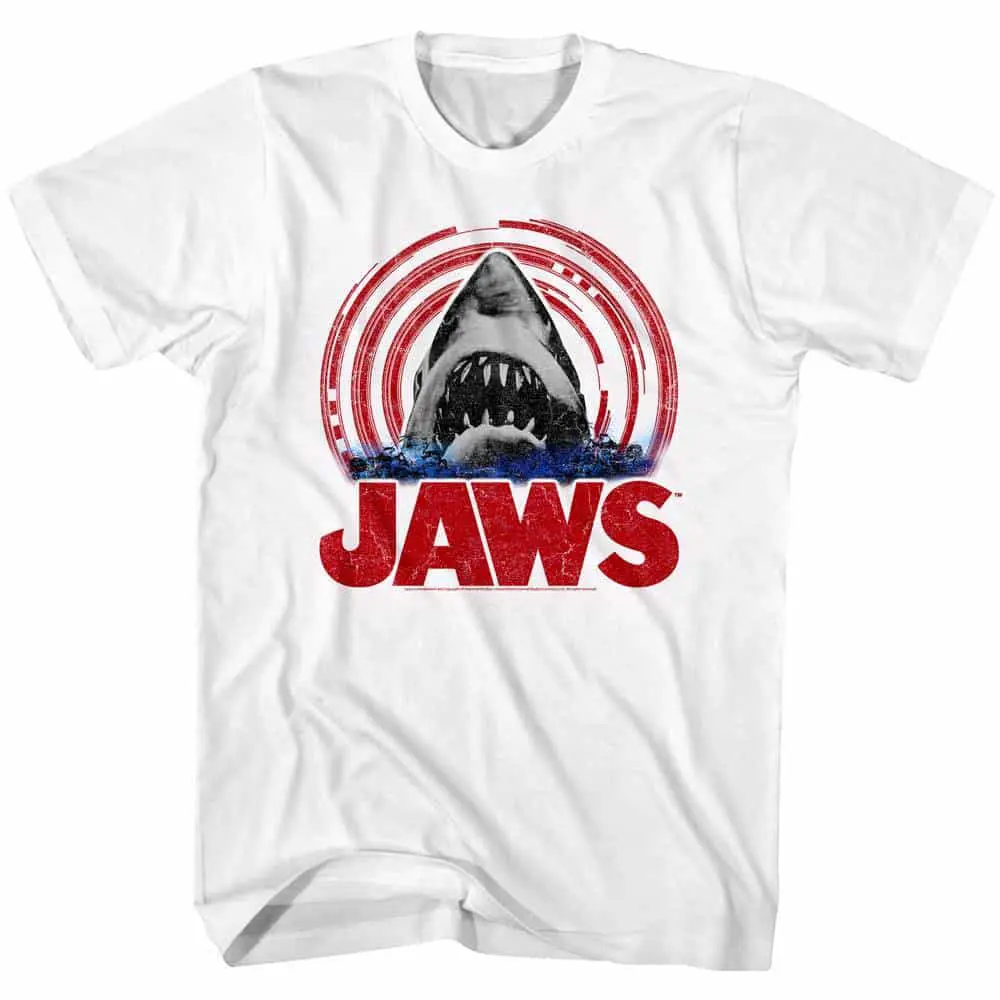 If you don’t know Jaws then where have you been hiding? This was the original blockbuster movie back in 1975 that launched this shark-based, natural horror movie series with a bang – in fact no horror movie had such a mainstream impact before. Celebrating it’s 50th Anniversary, the first Jaws movie is about a great white shark who attacks people off the coast of Amity Island, New England. The original Jaws film was based on the novel by Peter Benchley which itself was inspired by shark attacks in the rivers around New York and Massachusetts. If you love Shark week then this Jawesome graphic Jaws Shark Spiral Target T-Shirt will help you navigate Great White’s – just stay outta the water!