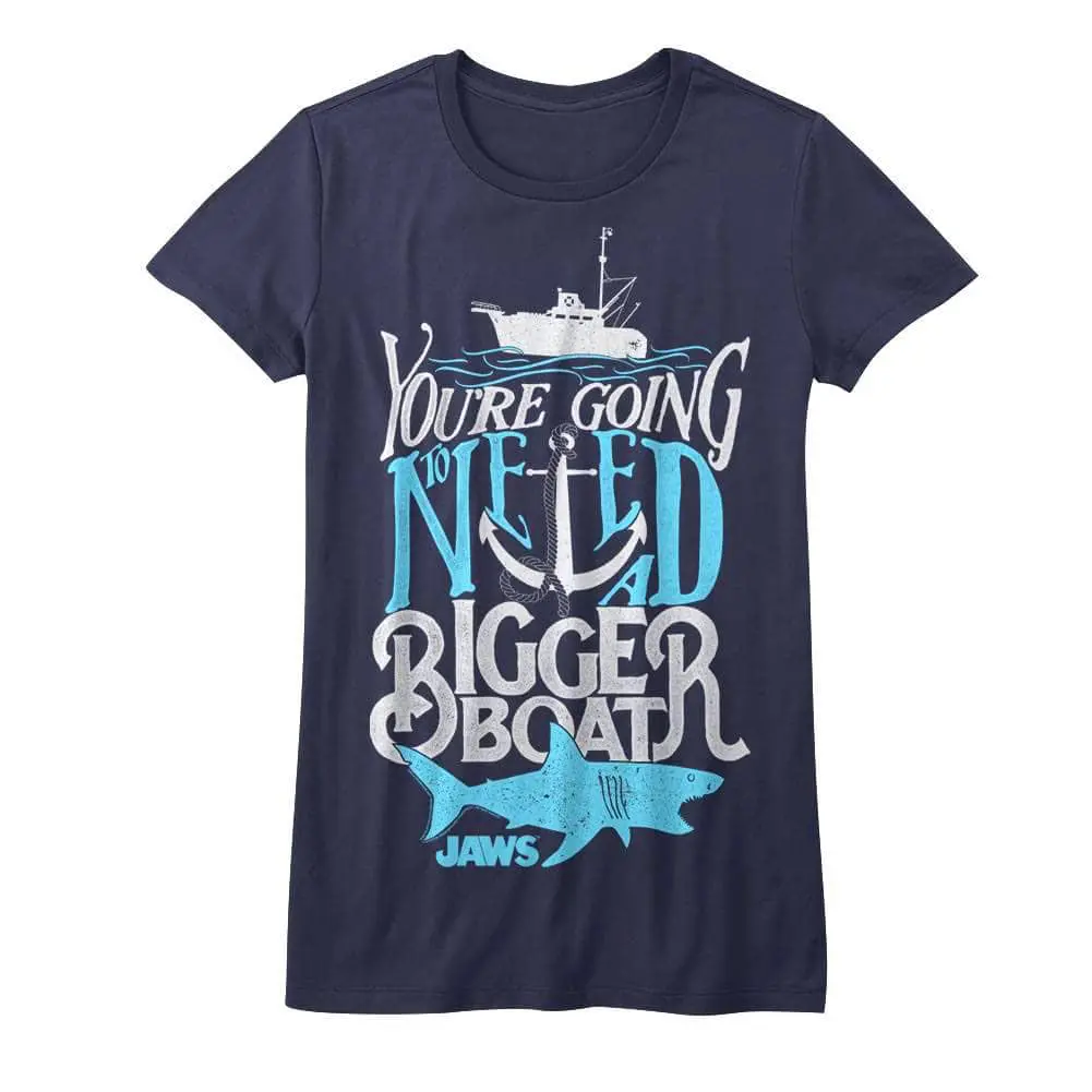 If you don’t know Jaws then where have you been hiding? This was the original blockbuster movie back in 1975 that launched this shark-based, natural horror movie series with a bang – in fact no horror movie had such a mainstream impact before. Celebrating it’s 50th Anniversary, the first Jaws movie is about a great white shark who attacks people off the coast of Amity Island, New England. The original Jaws film was based on the novel by Peter Benchley which itself was inspired by shark attacks in the rivers around New York and Massachusetts. If you love Shark week then this Jawesome graphic Jaws You’re Going to Need a Bigger Boat T-Shirt will help you navigate Great White’s – just stay outta the water!