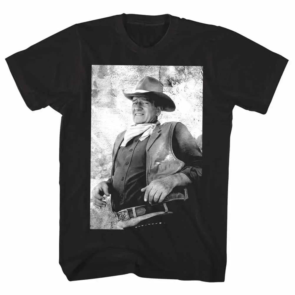 Marion Michael Morrison AKA John Wayne was the original Hollywood Cowboy. Starring in over 142 motion pictures in his lifetime, most of which were Westerns, John Wayne was seen as the “personification of American frontier heritage“. A true legend of Hollywood history, John Wayne rose beyond the typical recognition for a famous actor to that of an enduring icon who symbolized and communicated American values and ideals. The Duke’s iconic stoicism is reflected in this epic graphic John Wayne Vintage Photo t-shirt which inspires and reminisces at the same time.