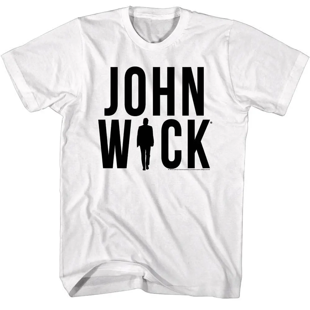 Jardani Jovanovich aka John Wick was born in Soviet Belarus an orphan, he was raised by a mentor and friend of his late father, Winston. He trained as a Hitman for the Russian Mob in New York City, where he took the anglicized name John Wick. But in the Hitman community at the Continental Hotel NYC he was known to the mob as Baba Yaga – or the Russian boogeyman because of his lethality. Future legend, Keanu Reeves plays the titular John Wick the hitman who wishes to retire, gets betrayed and then seeks vengeance against an impossible number of Russian assassins – across 4 movies! It’s bloody, gory, thrilling and exciting, and if you love the movie franchise then this graphic John Wick Silhouette Logo T-Shirt captures Wick at his essence. But now, yeah, I’m thinkin’ I’m back!