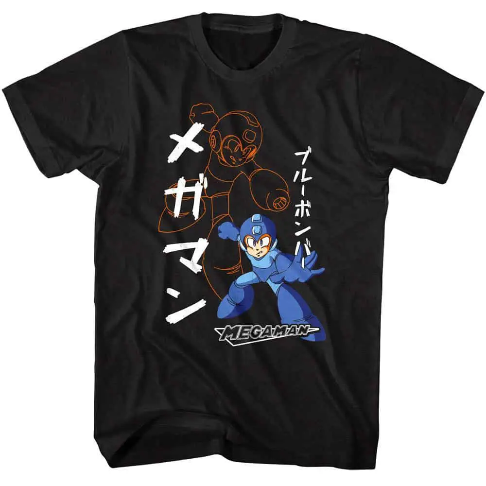 Capcom had yet another hit with Mega Man, who starred in a series of robot characters all known as Megaman (or Rokkuman in Japan). Having appeared on many gaming systems since his first appearance on NES Nintendo Entertainment System in 1987, Mega Man has had a wide gaming audience, but he is still battling the evil Dr Wily with his trusty pets. If you are a retro gamer then this vintage style graphic Megaman Ghost of Rokkuman t-shirt is for you, featuring your favorite old-school characters.