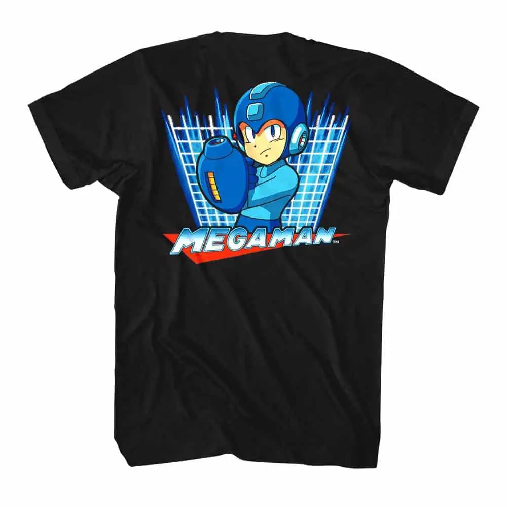 Capcom had yet another hit with Mega Man, who starred in a series of robot characters all known as Megaman (or Rokkuman in Japan). Having appeared on many gaming systems since his first appearance on NES Nintendo Entertainment System in 1987, Mega Man has had a wide gaming audience, but he is still battling the evil Dr Wily with his trusty pets. If you are a retro gamer then this vintage style graphic Megaman Gunner Grid t-shirt is for you, featuring your favorite old-school characters.