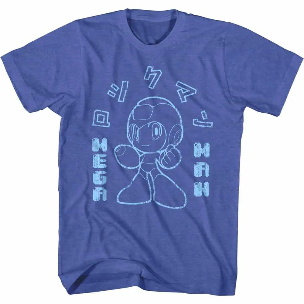 Capcom had yet another hit with Mega Man, who starred in a series of robot characters all known as Megaman (or Rokkuman in Japan). Having appeared on many gaming systems since his first appearance on NES Nintendo Entertainment System in 1987, Mega Man has had a wide gaming audience, but he is still battling the evil Dr Wily with his trusty pets. If you are a retro gamer then this vintage style graphic Megaman Japanese Chibi t-shirt is for you, featuring your favorite old-school characters.