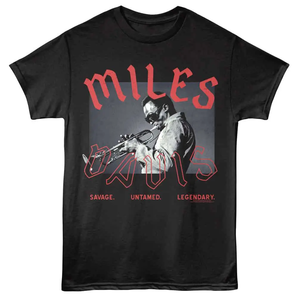A genuine legend of the Jazz scene, Miles Davis is considered one of the most influential musicians of his generation. Rolling Stone described him as “the most revered jazz trumpeter of all time, not to mention one of the most important musicians of the 20th century”. Releasing over 100 albums with his band during his career spanning over five decades, Miles Davis was prolifically successful. This vintage-style graphic Miles Davis Savage Untamed Legendary T-Shirt is designed to look as if you bought it way back in the day.