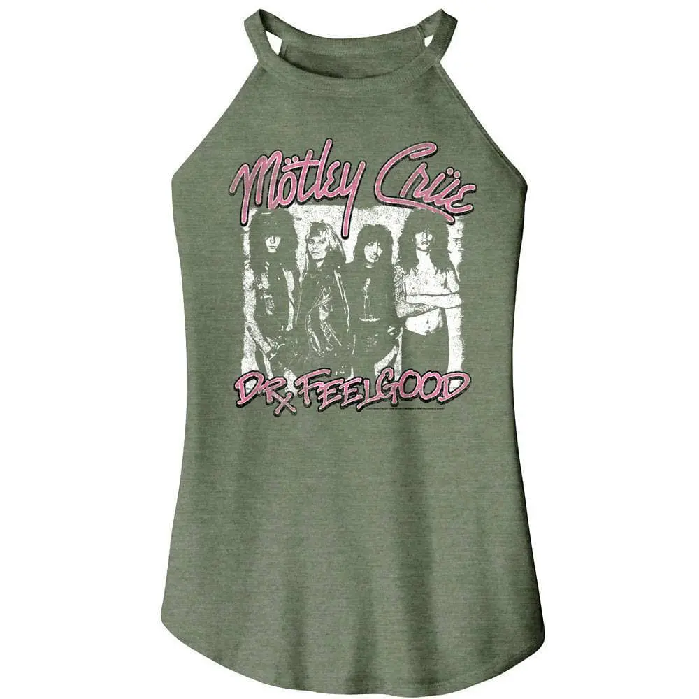The Saints of Los Angeles aka the Bad Boys of Hollywood are well known for their hedonistic lifestyle, Motley Crue is known for the rock lifestyle just as much as the rock music itself! From the heavy metal Shout at the Devil to the more glam Theater of Pain to the multi-platinum Dr Feelgood, the Crue are entertainers that change with the times. Motley Crue are true Heavy Metal showmen, known for their flame-thrower guitars, roller coaster drums and fireworks not to mention their trusty mascot, Allister Fiend. Grab some rock history first, this cool Motley Crue Dr Feelgood Photo Rocker Tank is vintage style with a faded print so it looks as if you bought it at a show in the 80’s.