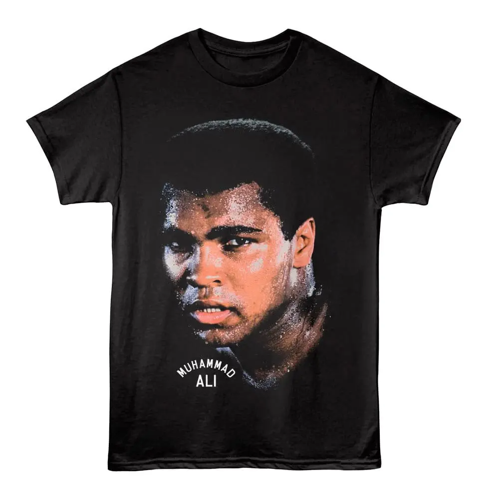 Cassius Marcellus Clay Jr aka Muhammad Ali is widely considered as one of the greatest boxers of all time, in fact “The Greatest” was his nickname. Born and raised in Louisville, Kentucky, at just 18 he won a gold medal in the light heavyweight division at the 1960 Summer Olympics. After turning pro and becoming heavyweight champion for the first time, Clay converted to Islam in 1961 and eventually took the name Muhammad Ali. The undisputed heavyweight world champion on 4 occasions, Ali was an icon in an era of legendary fighters. For real boxing fans, this graphic Muhammad Ali Extreme Close-up t-shirt has a vintage style print with a distressed look as if you bought it on fight night in the 70’s.