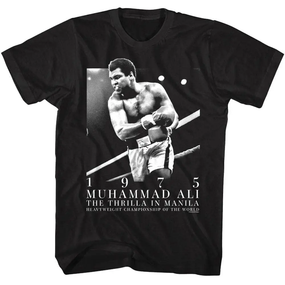 Cassius Marcellus Clay Jr aka Muhammad Ali is widely considered as one of the greatest boxers of all time, in fact “The Greatest” was his nickname. Born and raised in Louisville, Kentucky, at just 18 he won a gold medal in the light heavyweight division at the 1960 Summer Olympics. After turning pro and becoming heavyweight champion for the first time, Clay converted to Islam in 1961 and eventually took the name Muhammad Ali. The undisputed heavyweight world champion on 4 occasions, Ali was an icon in an era of legendary fighters. For real boxing fans, this graphic Muhammad Ali Thrilla in Manila 75 t-shirt has a vintage style print with a distressed look as if you bought it on fight night in the 70’s.