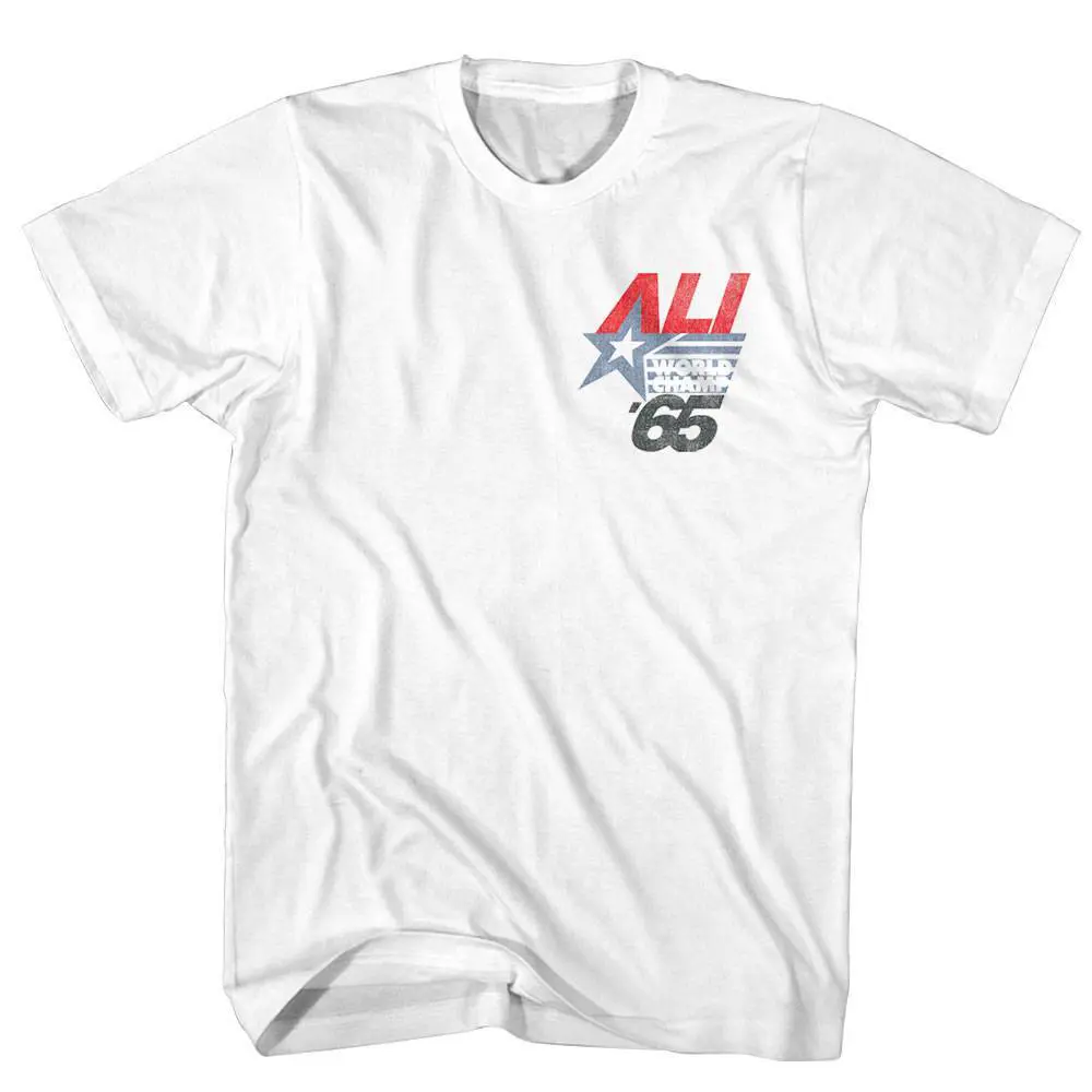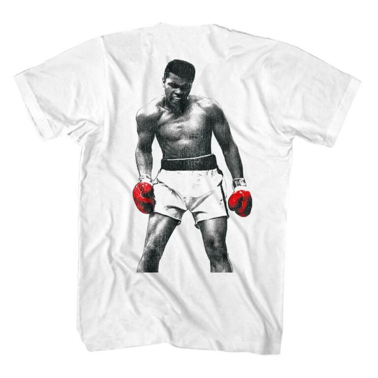 Cassius Marcellus Clay Jr aka Muhammad Ali is widely considered as one of the greatest boxers of all time, in fact “The Greatest” was his nickname. Born and raised in Louisville, Kentucky, at just 18 he won a gold medal in the light heavyweight division at the 1960 Summer Olympics. After turning pro and becoming heavyweight champion for the first time, Clay converted to Islam in 1961 and eventually took the name Muhammad Ali. The undisputed heavyweight world champion on 4 occasions, Ali was an icon in an era of legendary fighters. For real boxing fans, this graphic Muhammad Ali World Champ 65 t-shirt has a vintage style print with a distressed look as if you bought it on fight night in the 70’s.